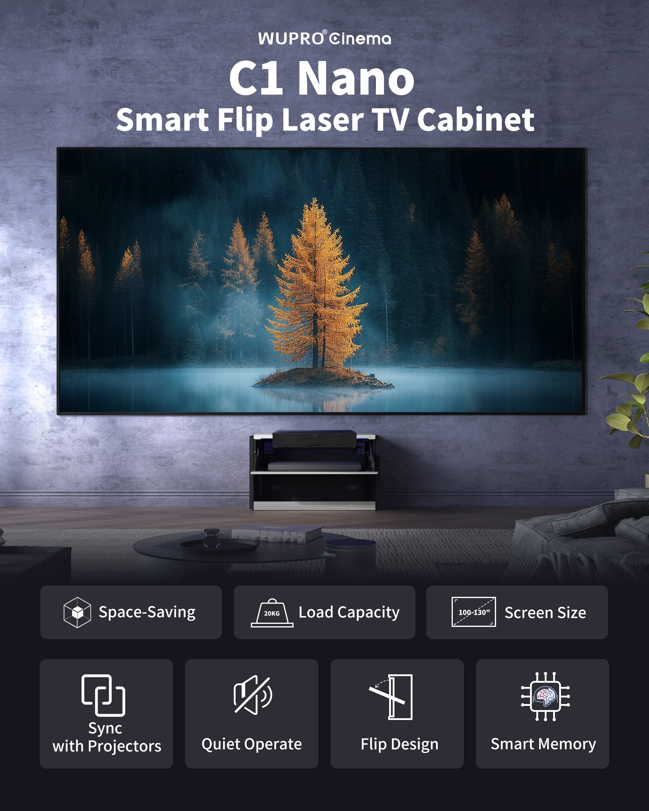 WUPRO Cinema LeApex CLR Smart Motorized Floor Rising Screen CBSP